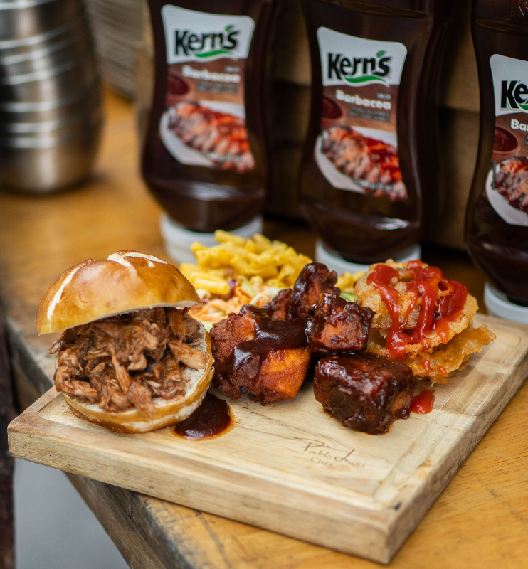 Se trata de una salsa barbacoa 100% natural que no contiene almidones, espesantes, colorantes ni sabores artificiales. Esto la hace una excelente alternativa natural para sazonar alimentos como: carne de res, pollo o cerdo y acompañar comidas como alitas, papas fritas, nachos y otras especialidades diseñadas para picar en reuniones y celebraciones. Además, la salsa barbacoa Kern’s tiene un aporte significativo de Vitamina C y licopeno, un antioxidante natural encontrado en distintas frutas y verduras.