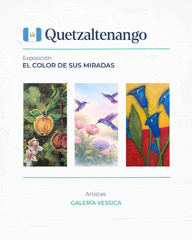 • Artistas de la Galería Vessica, dirigida por Mynor Cojolum, Roberto de León, Ana Lucrecia Sunhum, Loren Alvarado, Dany Sánchez, Guadalupe Sum, Adriana Urizar, César Pinto, Carla Molina, Karin Ely, Rachael Shenyo y Dany Tucux, conforman la Expo El Color de sus miradas, presentada en Casa de Homenajes, Quetzaltenango. Son 23 obras en total que se inician a presentar el 29 de abril a las 10 am.