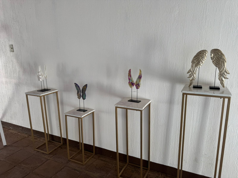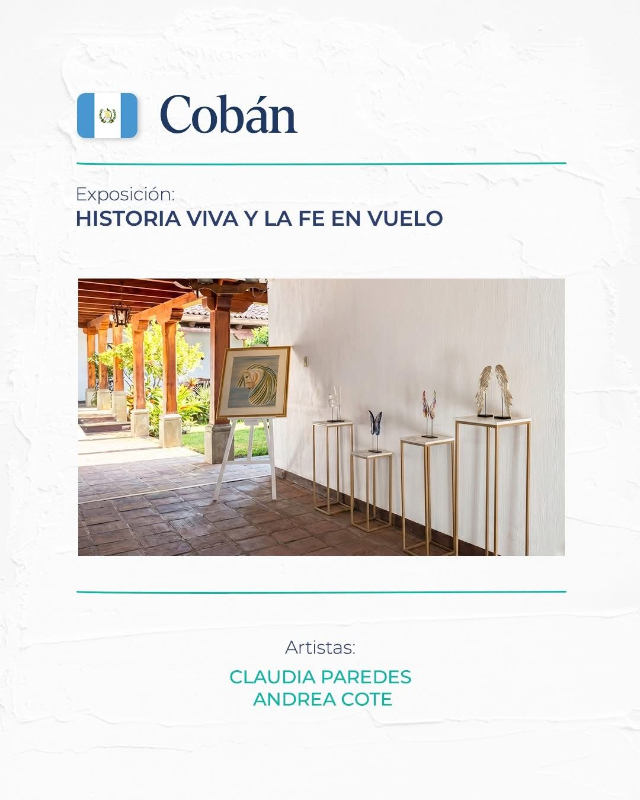 • La Expo Herencia Viva y Fe en Vuelo, presenta 4 esculturas de Claudia Paredes, artista que piensa que no hay nada más poderoso que la fe y se inspiró en el creador para concebir hermosas obras de arte. En Cobán se tienen 6 obras expuestas de la artista y 2 obras de Andrea Cote.